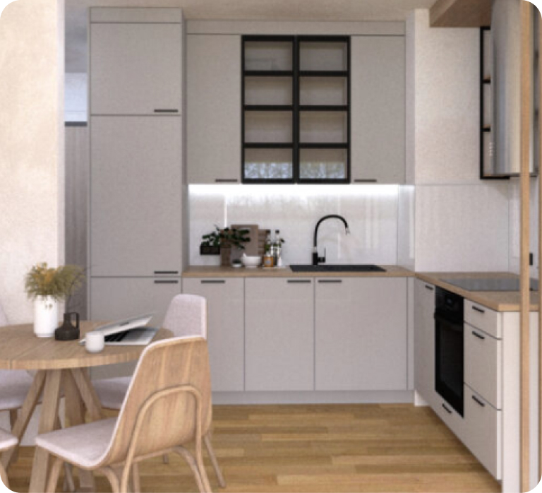 Ekonomiczny wariant wykończenia wnętrz, zakładający przeprowadzenie podstawowych prac remontowych wraz z wyposażeniem określonym w pakiecie. Największym atutem pakietu MINI jest niewielka cena, w skład której wchodzi: