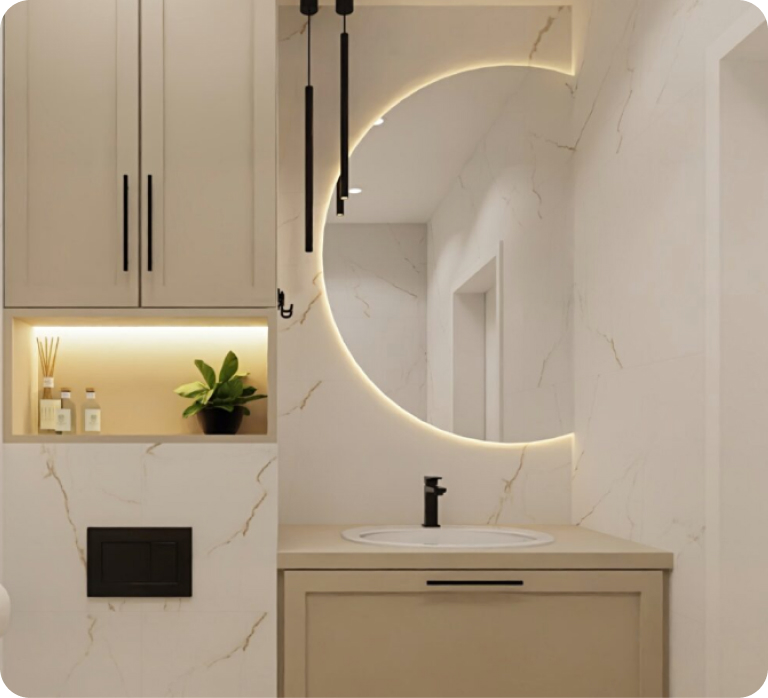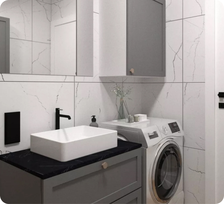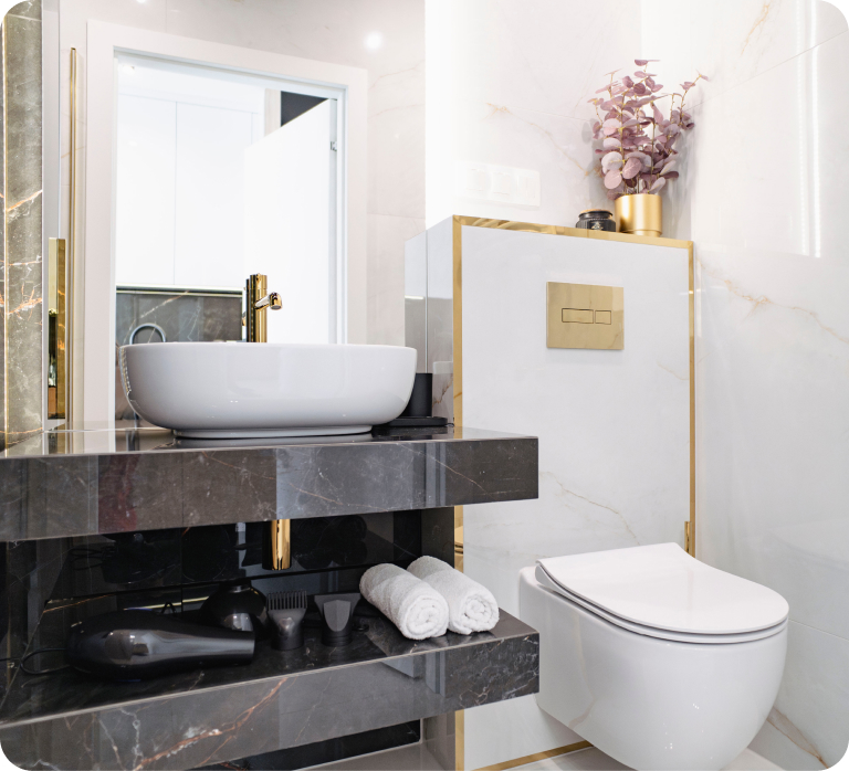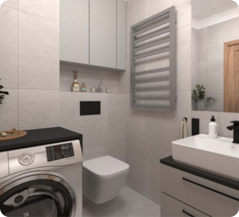 Wielkim atutem wariantu DOM jest atrakcyjna cena oraz wykonanie darmowej aranżacji łazienek, a w przypadku zamówienia mebli