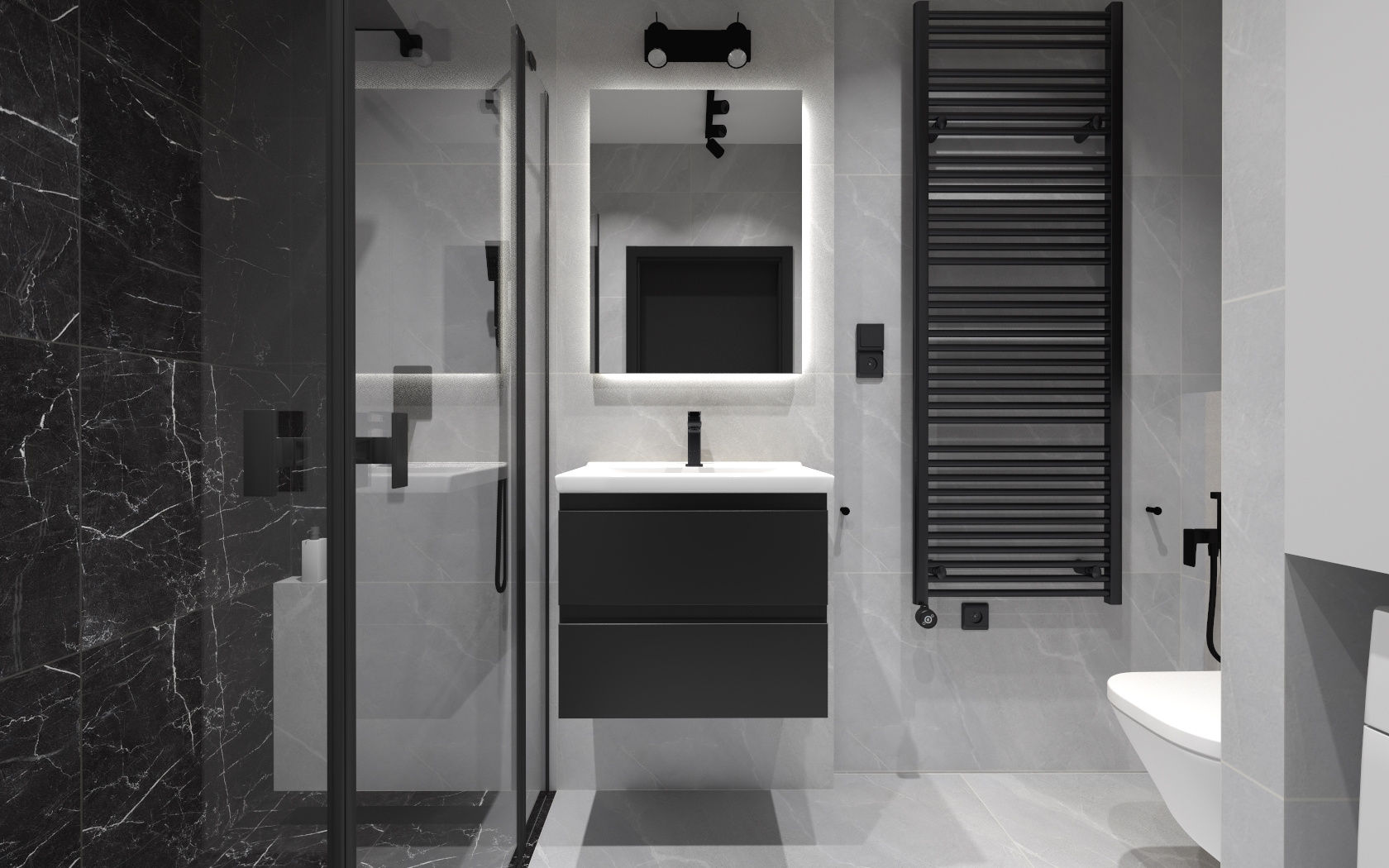 Przedstawiamy realizację pod klucz wnętrz nowoczesnego mieszkania na ul. Banacha w Krakowie. Inwestycja została zaprojektowana w myśl o stonowanej, ciemniejszej palecie kolorystycznej. Dominujące są tutaj odcienie szarości, materiały o kamiennych wzorach oraz czarne dodatki. To klasyczne wnętrze odporne na czas.