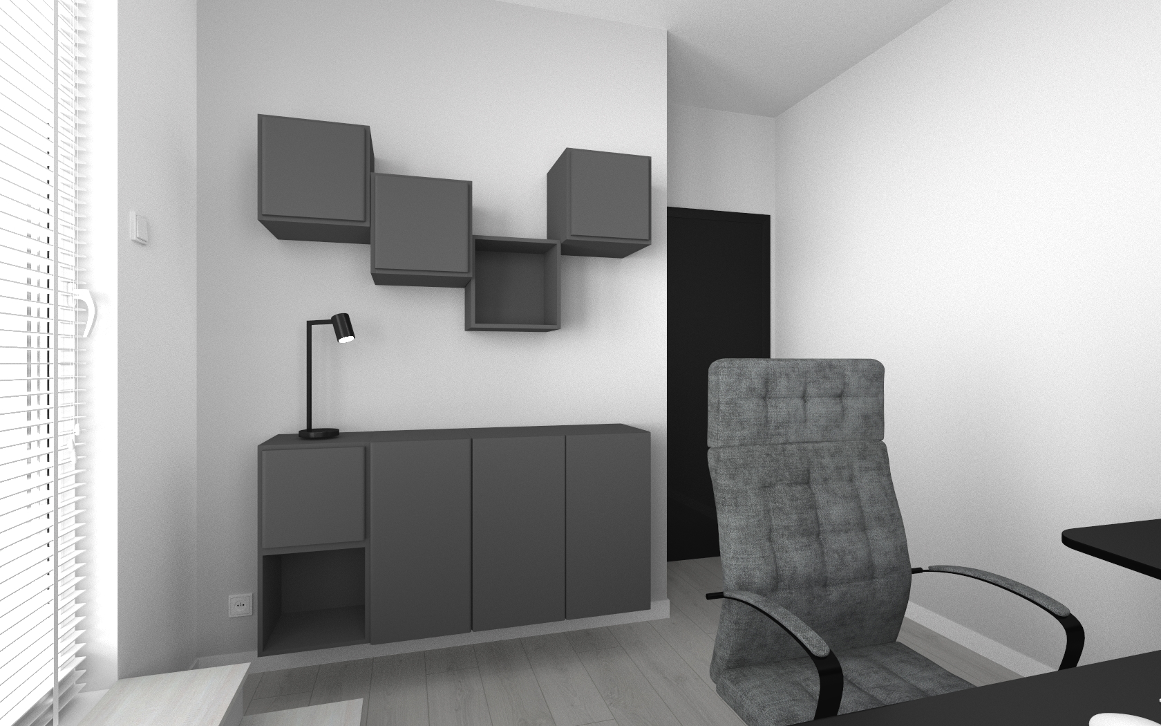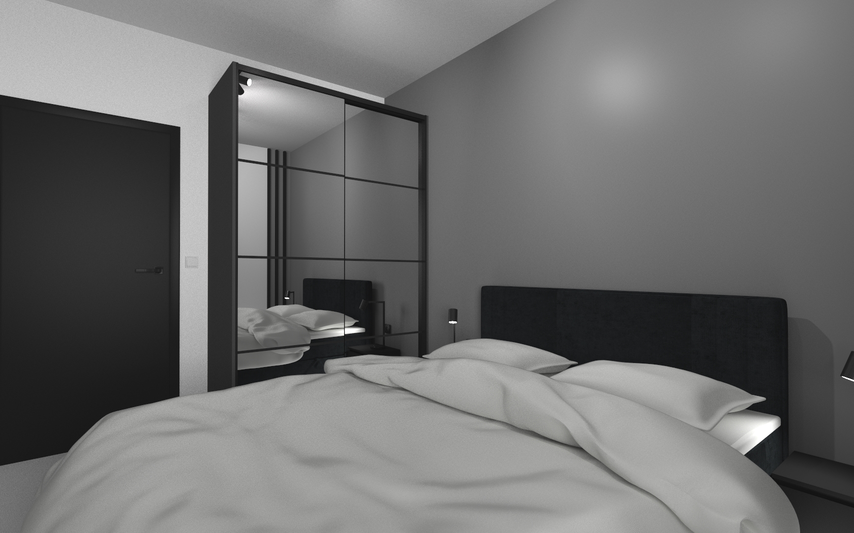 Warto zauważyć lamele ścienne i podwieszany sufit w salonie – modne dodatki nadające wnętrzom atrakcyjności. Co więcej, w motyw przewodni mieszkania doskonale wpasowują się czarne drzwi. Szara zabudowa przedpokoju płynnie przechodzi w meble kuchenne. Za wszystkie zaprojektowane elementy wykończenia i wyposażenia mieszkania przy ul. Banacha odpowiada firma SaniWell – jest to standard “wchodzisz i mieszkasz”, którego efektem są wnętrza gotowe do zamieszkania. W wykończonym mieszkaniu zainstalowane zostanie wyposażenia takie jak klimatyzacja, telewizor, meble ruchome czy AGD. Mieszkania o ciemnym motywie stają się coraz popularniejsze – prezentują się ponadczasowo i elegancko. Tutaj znajdziecie informacje o innej realizacji, której motywem przewodnim były czernie.