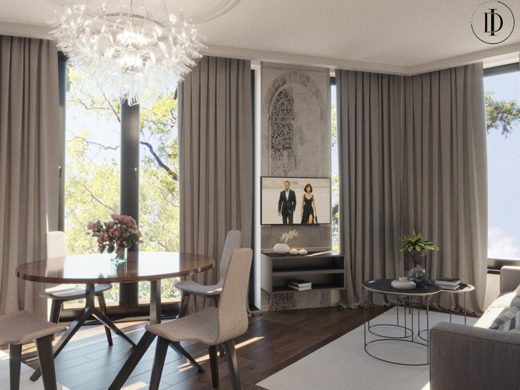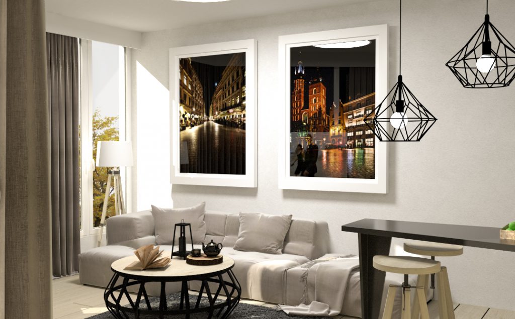 Przedstawiamy projekty wnętrz, które zostały przygotowane z myślą wykończenia mieszkań w jednej z krakowskich kamienic. Freski kojarzą się z krakowskimi kamienicami i taki też był zamysł architekta. Wnętrze zostało zaprojektowane łącząc nowoczesność z krakowską tradycją.