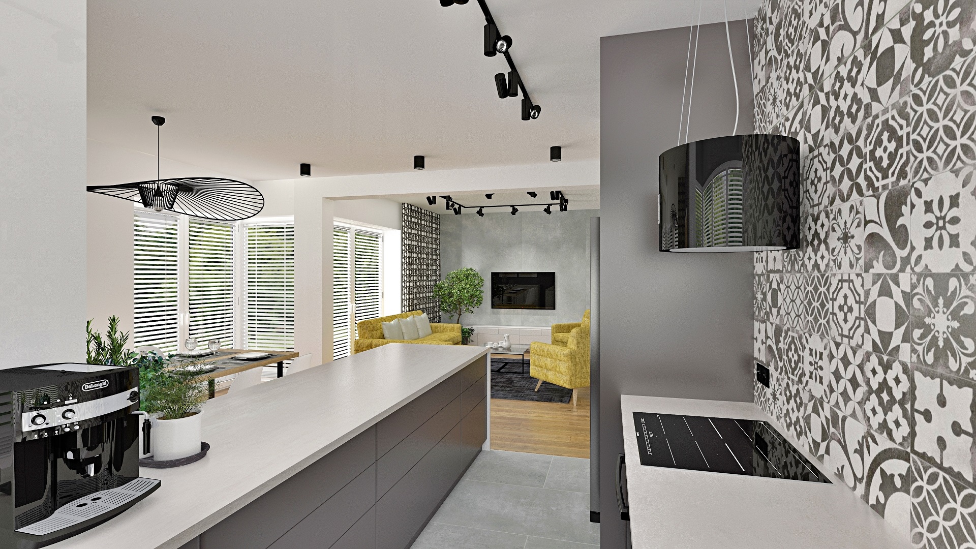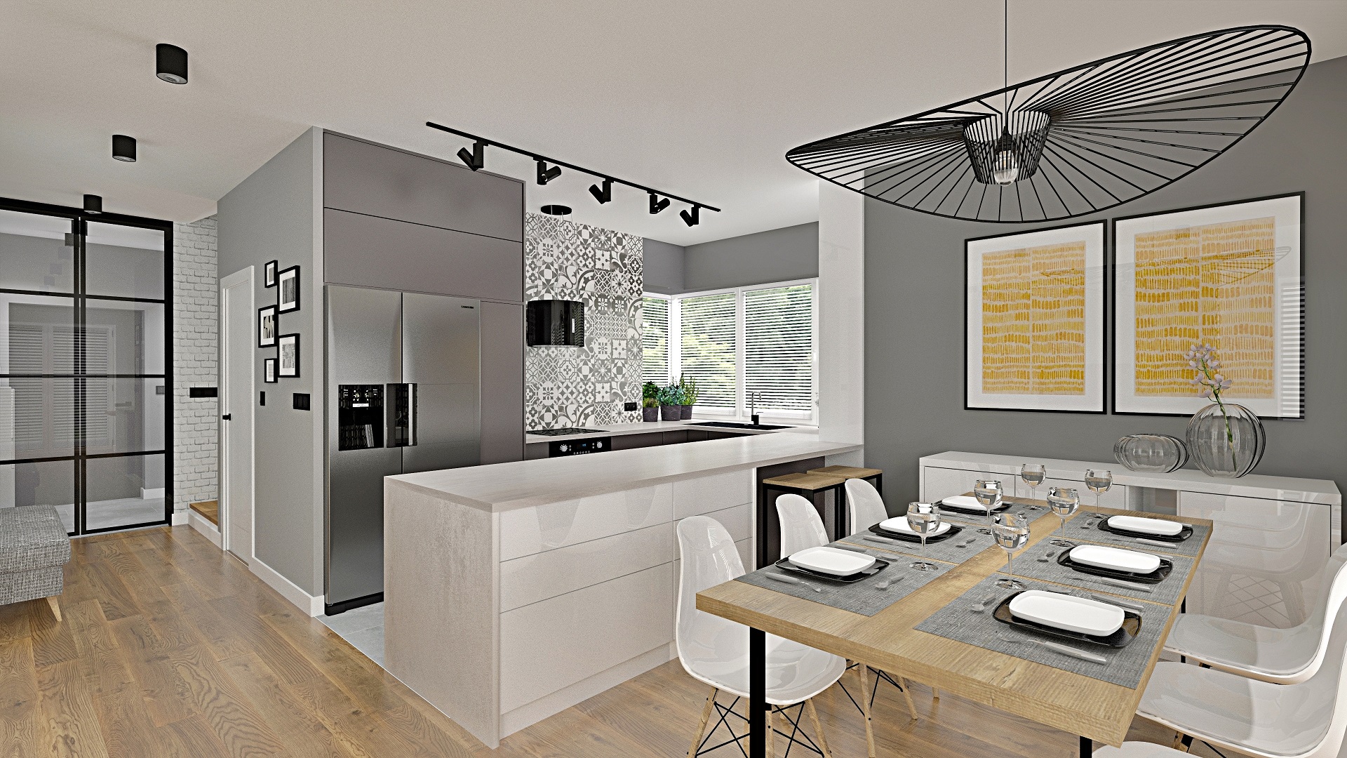 Wnętrze domu zlokalizowanego na obrzeżach Krakowa zostało zaprojektowane w średnim standardzie z uwzględnieniem oczekiwań klienta i dysponowanego budżetu. Projekt zakładał przestrzeń o lekkiej i otwartej stylistyce, odpowiadającej rodzinnym potrzebom.
